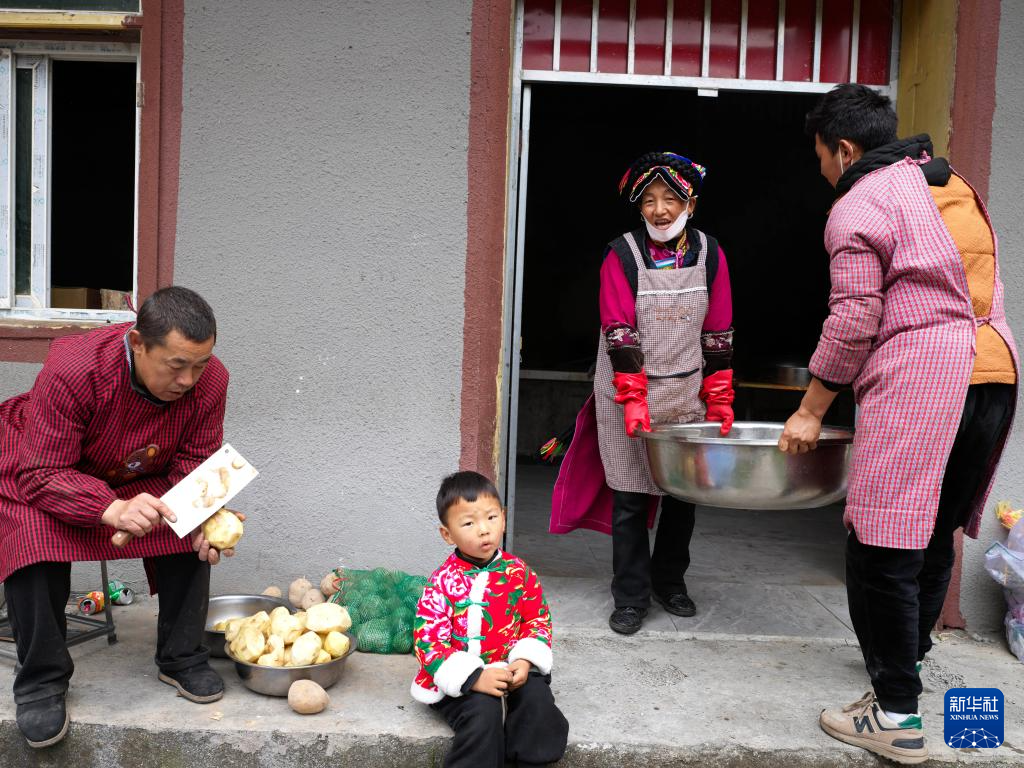 11月18日,在茂县赤不苏镇赤不苏村,村民准备丰盛的美食,迎接羌年的到来。