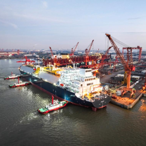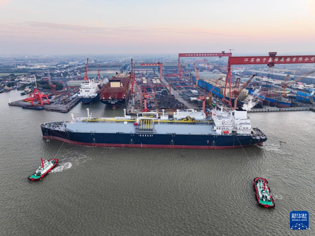 11月20日,江苏扬子鑫福造船有限公司建造的17.5万立方米LNG运输船“鑫福124”轮,在海事等部门全程协调保障下,于江苏泰州泰兴市顺利出江试航。