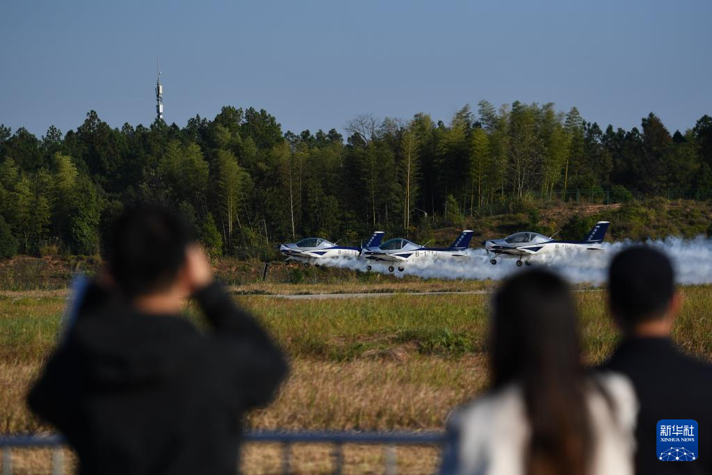 11月21日,观众在株洲芦淞机场观看动态飞行表演。