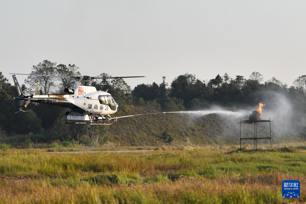 这是11月21日在株洲芦淞机场拍摄的直升机消防演练。