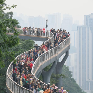 近日,重庆半山崖线鹅岭栈桥正式对外开放。该栈桥全长460米,宽3米,最高处距地面28米,依天然崖壁而建,将鹅岭公园与佛图关公园连为一体,独特的观江视野使其成为重庆旅游观光的新晋地标。