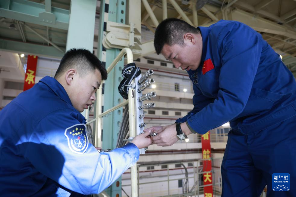 11月9日,工作人员在对神舟二十二号的供气管路进行吹除作业。