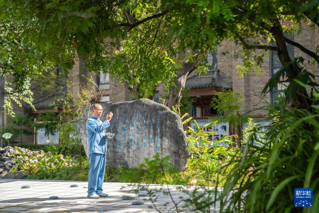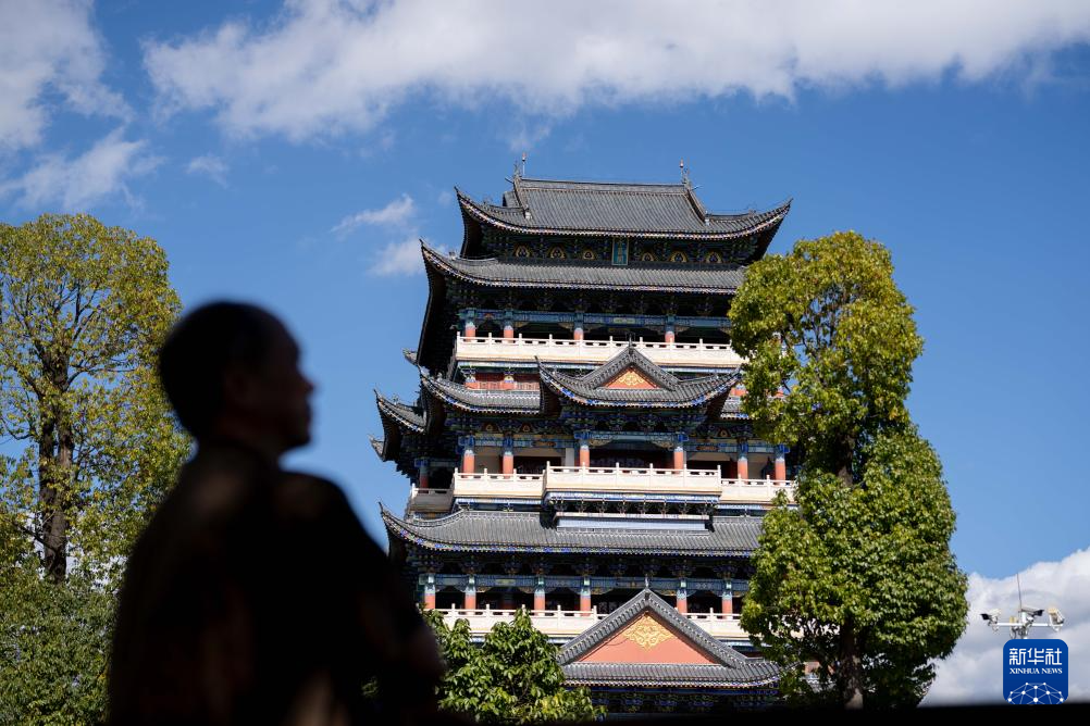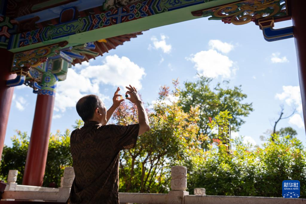 11月20日,李国伟在保山市永子棋院永昌阁前远眺。新华社记者 高咏薇 摄pagebreak
