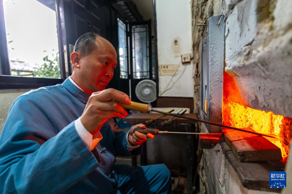 11月19日,匠人在保山市永子文化园滴制永子。新华社记者 高咏薇 摄pagebreak