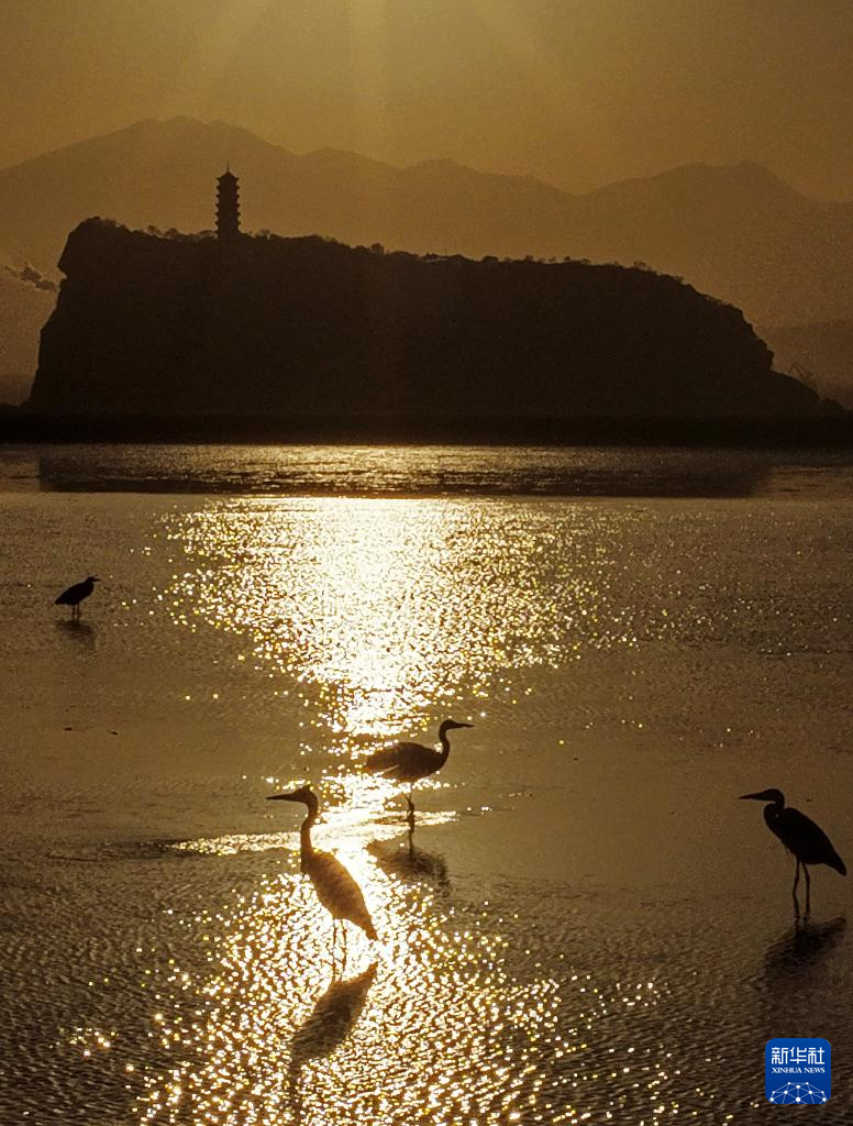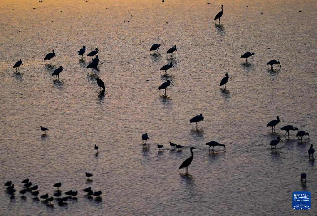 冬日暖阳洒满鄱阳湖,江西省湖口县鄱阳湖鞋山水域一派生机盎然。连日来,东方白鹳、白琵鹭等珍稀越冬候鸟,或翩跹栖息于滩涂,或低头在浅水中觅食,绘就成一幅和谐共生的生态画卷。