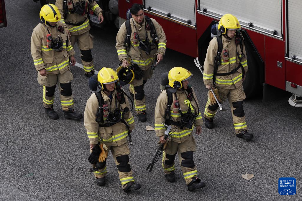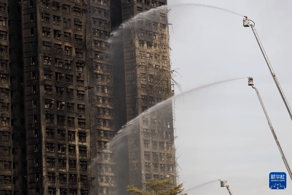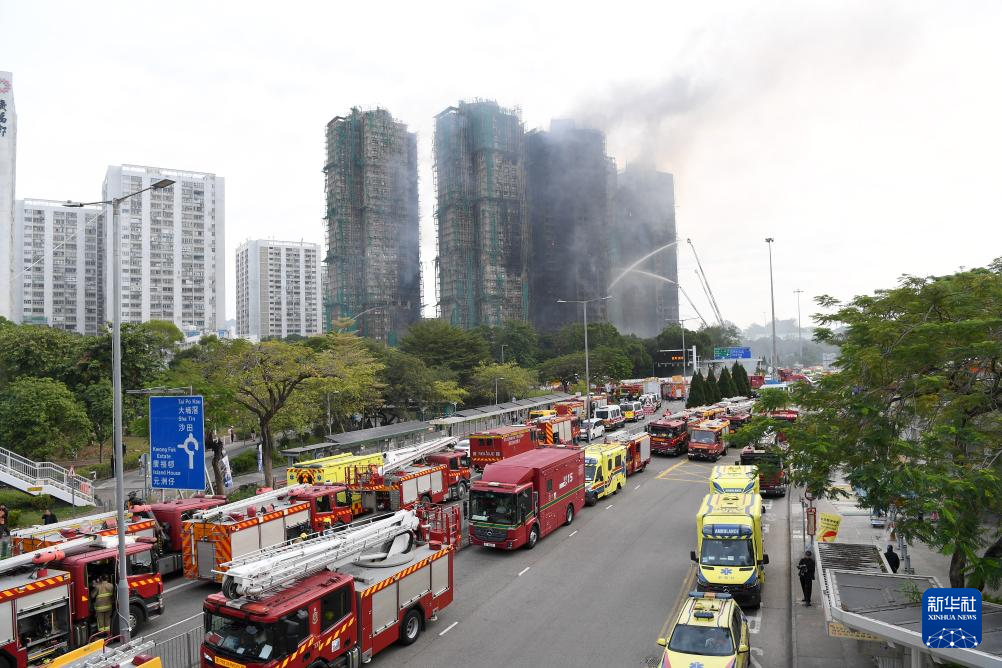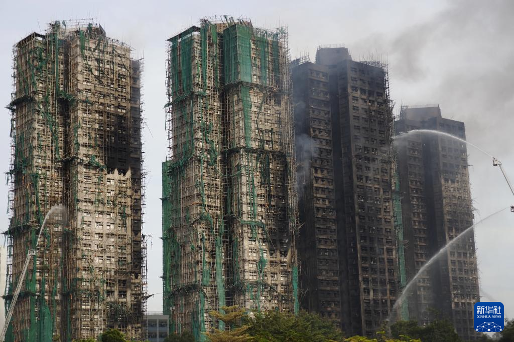 11月27日拍摄的香港大埔宏福苑火灾救援现场。