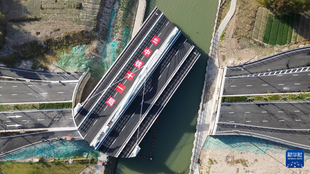 11月28日拍摄的平转式开启桥“三灶港桥”(无人机照片)。