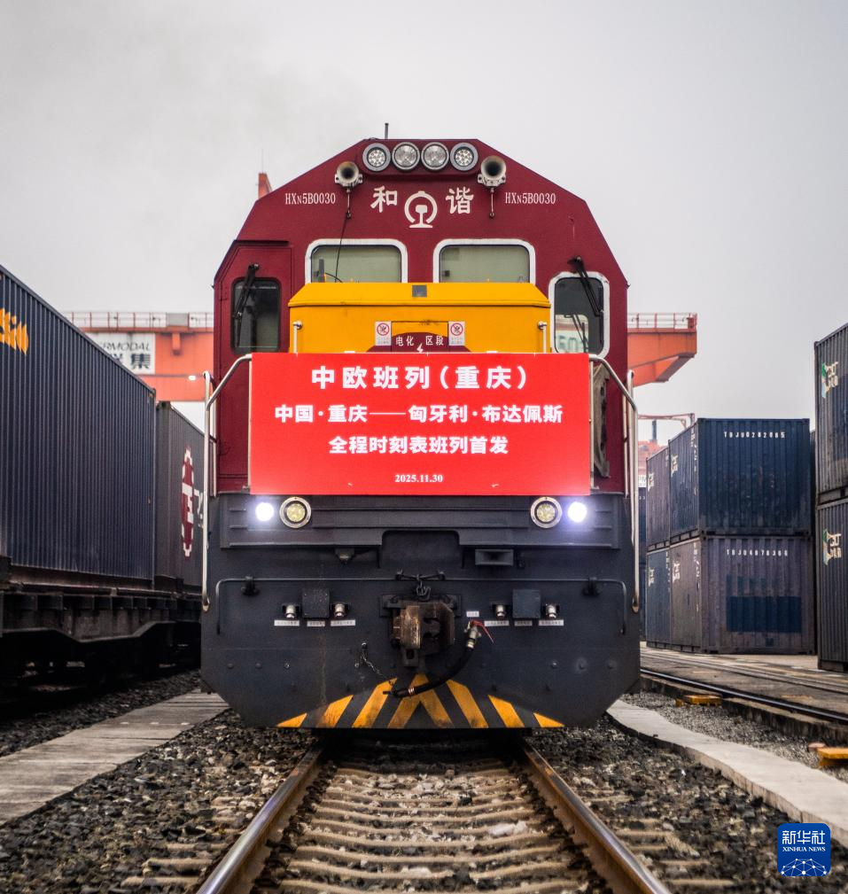 11月30日,一列满载汽摩配件、日用百货等商品的中欧班列从重庆团结村中心站开出,驶向匈牙利首都布达佩斯,这标志着重庆—匈牙利布达佩斯全程时刻表中欧班列正式开行。