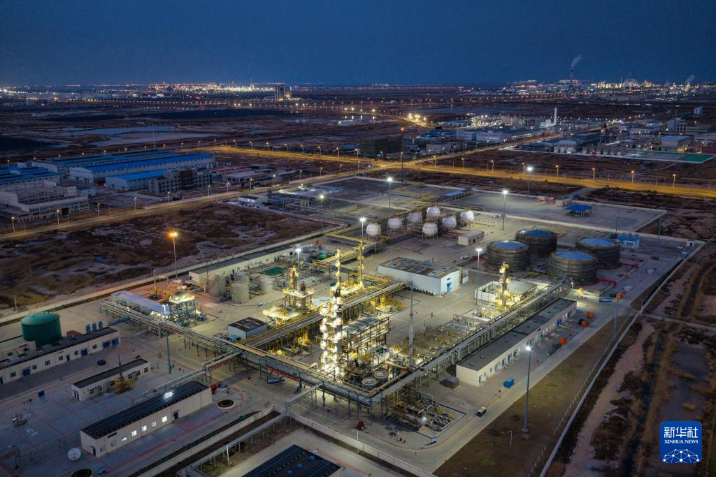 这是12月1日在天津市滨海新区拍摄的渤海油田渤西油气处理厂(无人机照片)。