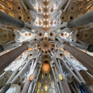 西班牙巴塞罗那地标建筑圣家族大教堂(圣家堂)由西班牙著名建筑师高迪设计,从1882年开始修建至今,预计将于2030年竣工。