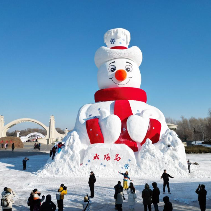 12月9日,第38届太阳岛雪博会标志性雪塑景观“雪人先生”在哈尔滨太阳岛风景区正式亮相。“雪人先生”高23.8米,用雪量达5000立方米。