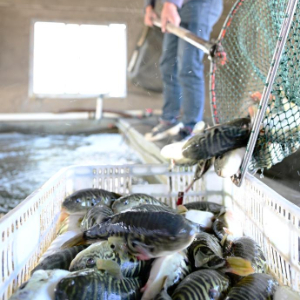12月10日,在漳州市漳浦县佛昙镇东坂村,收购商打捞河豚鱼。