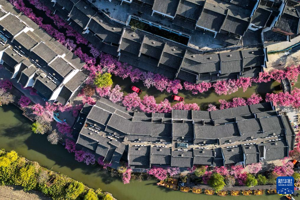 12月7日,在安徽省芜湖市繁昌区繁阳镇范马村,自行车运动爱好者在风景如画的淮九公路上骑行(无人机照片)。