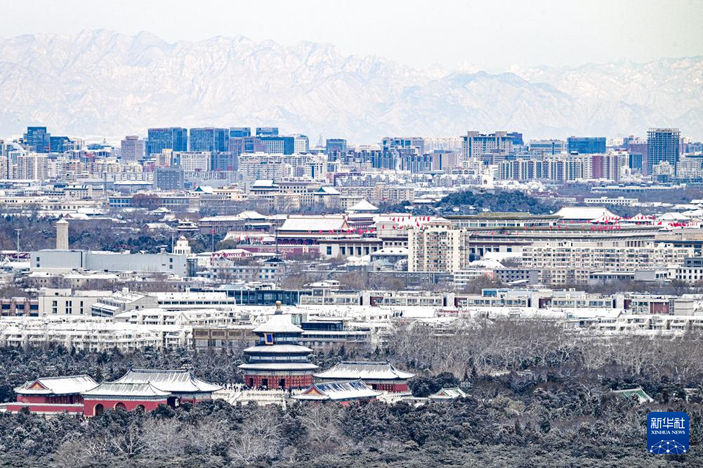12月12日,北京市迎来降雪。雪后,城市银装素裹。