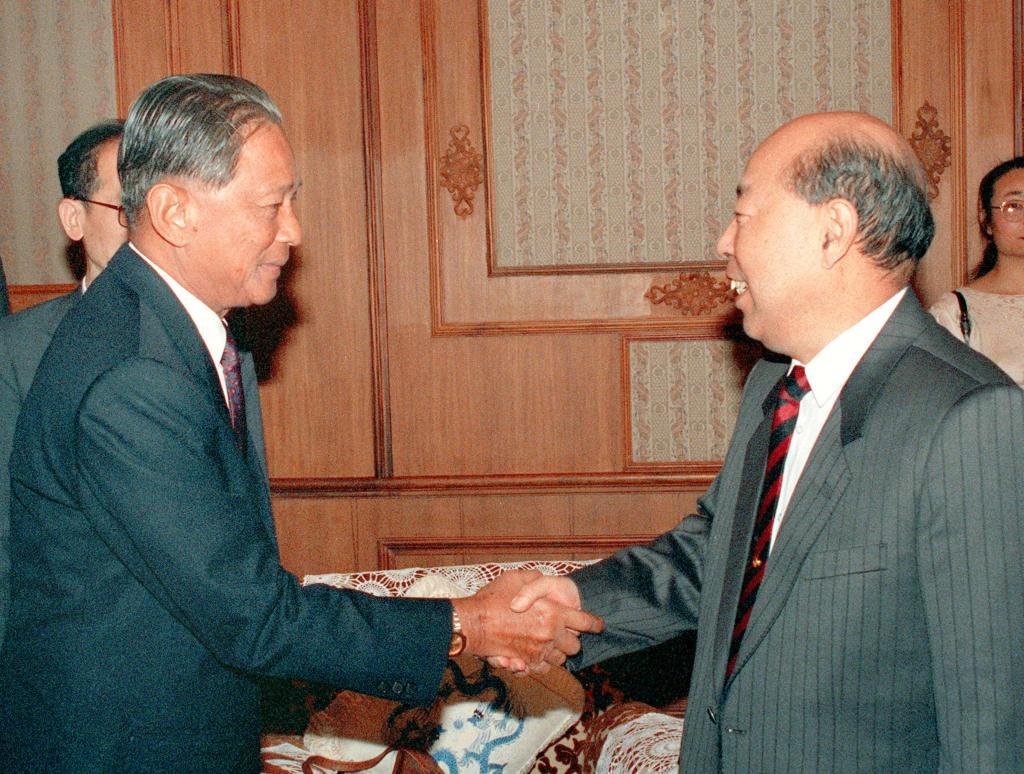 1994年5月10日,王丙乾同志在北京钓鱼台国宾馆会见由主席巴攀·杜巴德米率领的泰国上议院军委会代表团。