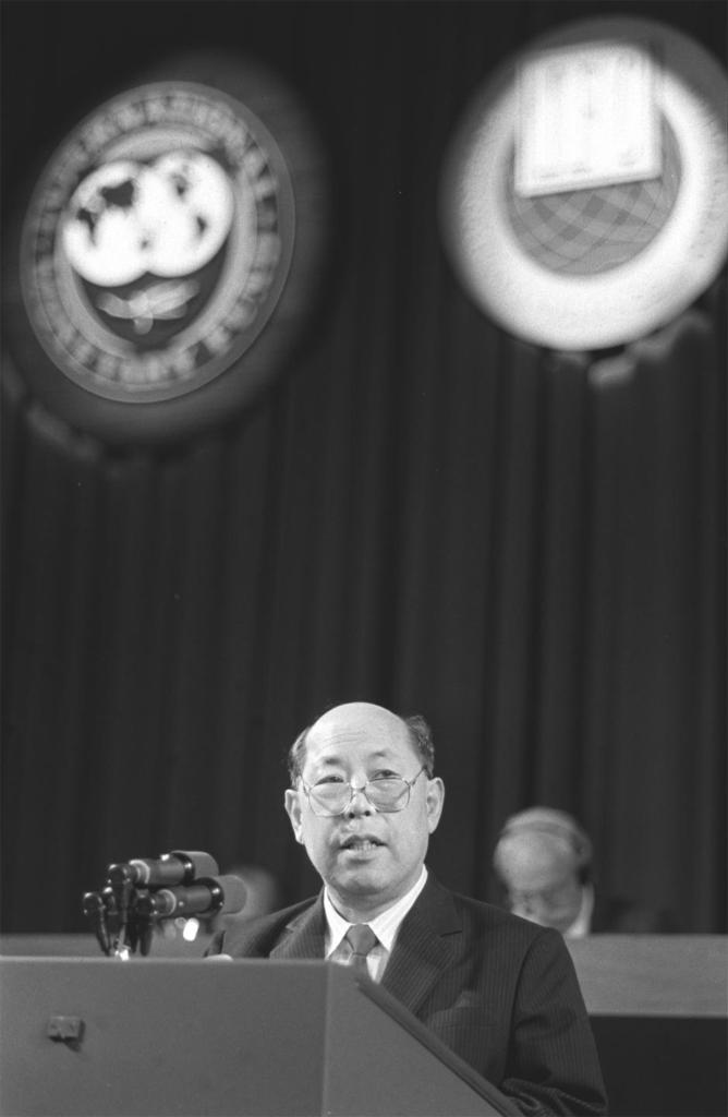 1990年9月25日,国际货币基金组织和世界银行年会在美国首都华盛顿开幕。这是王丙乾同志在会上发言。