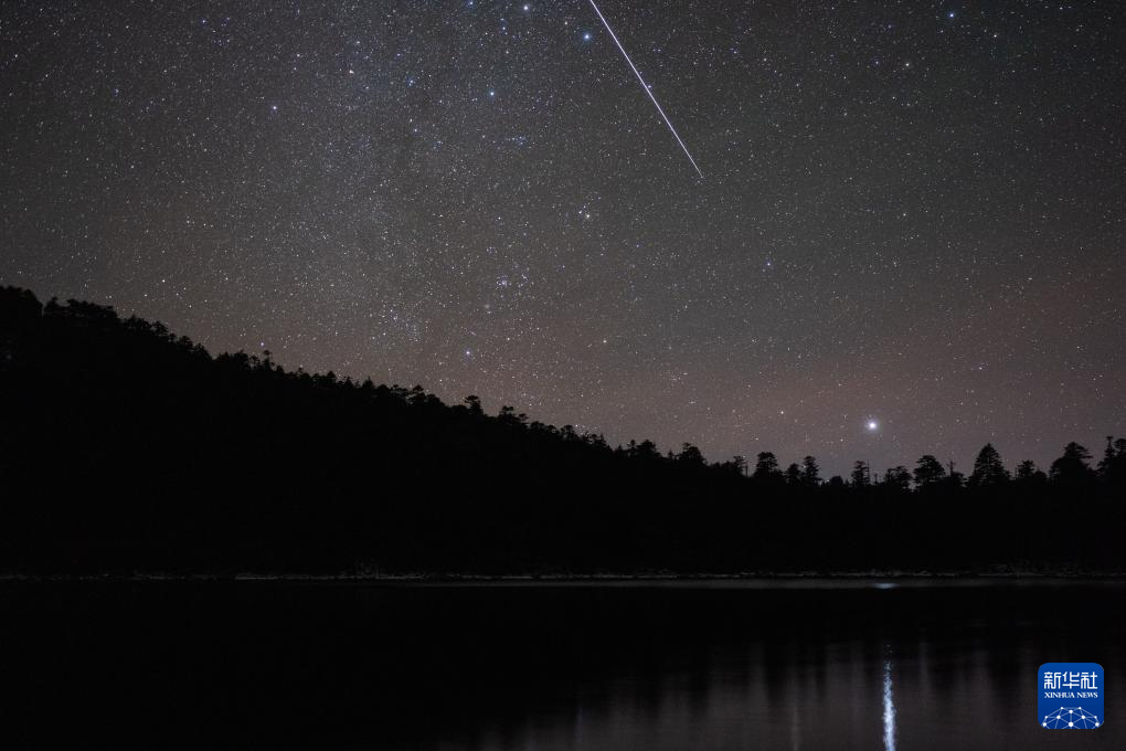 12月14日,在四川省甘洛县牛角海,双子座流星划过夜空。