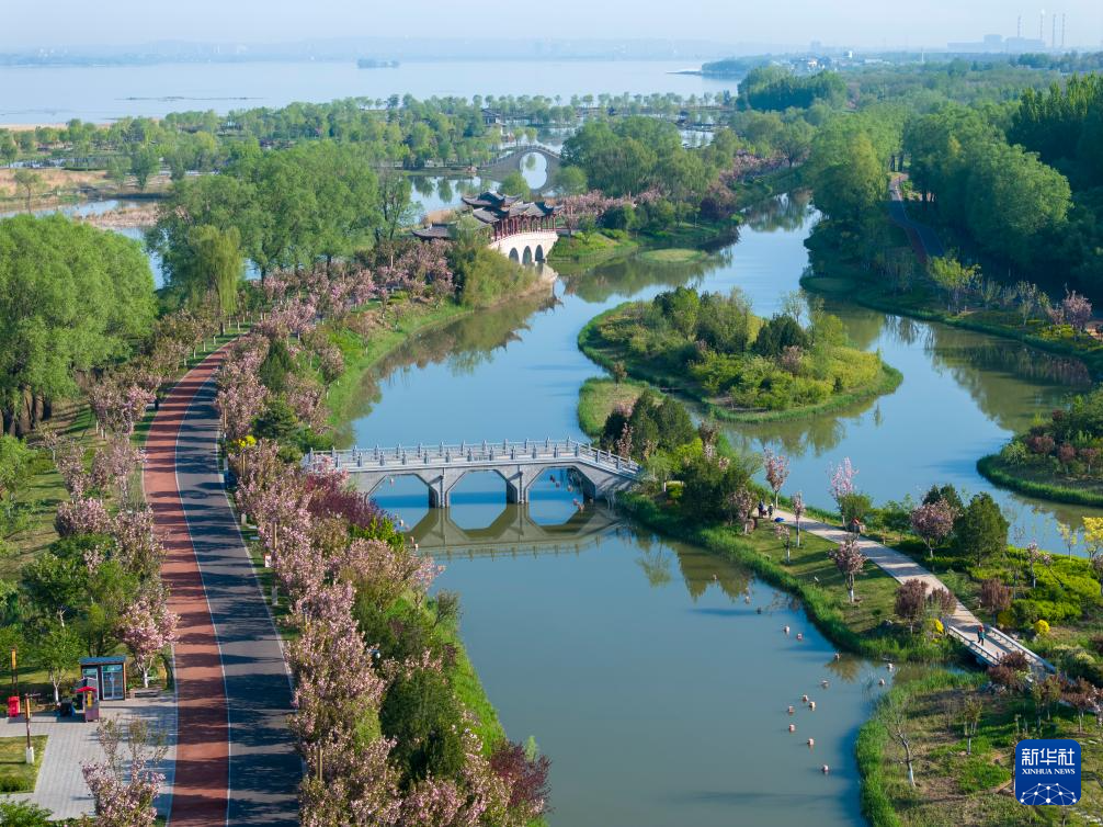 山西省长治市漳泽湖国家城市湿地公园一景(5月5日摄,无人机照片)。