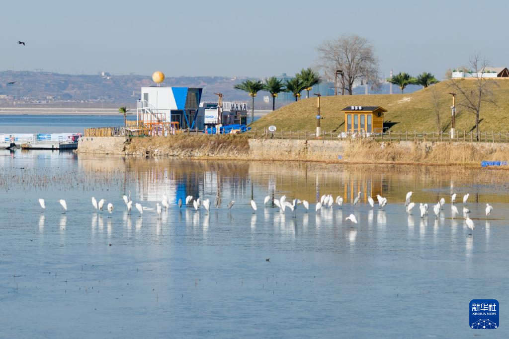 候鸟在山西省长治市漳泽湖国家城市湿地公园栖息(12月4日摄,无人机照片)。