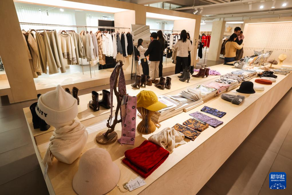 12月18日,在嘉兴电子商务产业园南湖园区内,顾客在一家电商公司的体验店选购服饰。