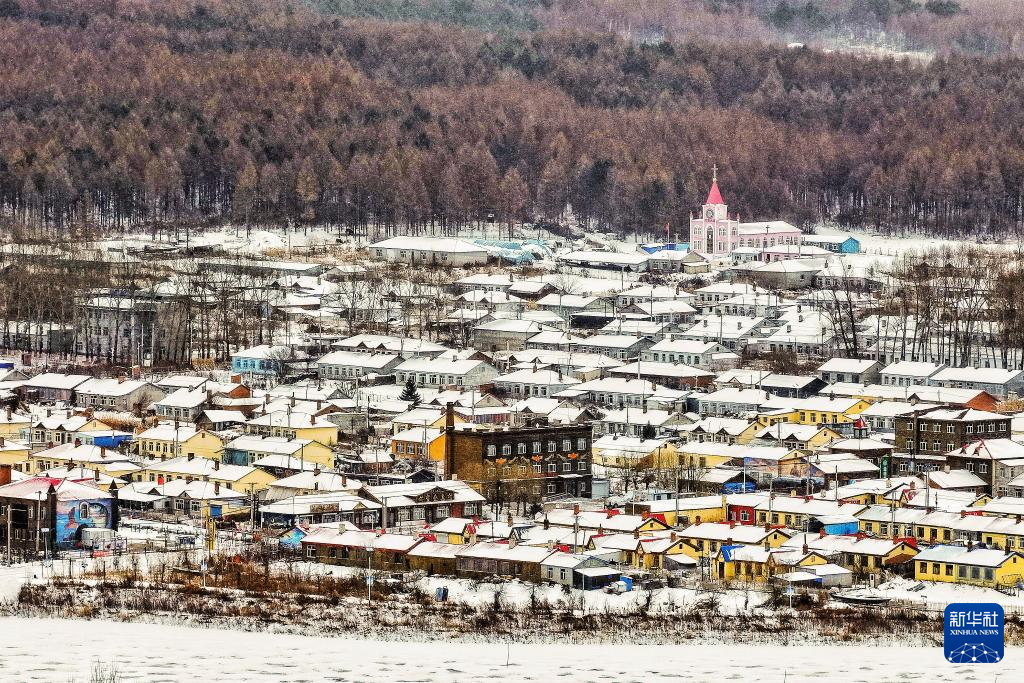 这是黑龙江省佳木斯市同江市街津口赫哲族乡冬景(无人机照片,2025年11月17日摄)。