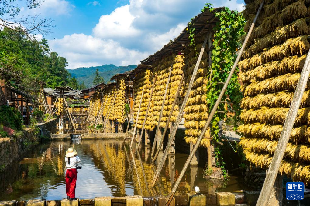 贵州省从江县高增乡占里村禾晾景观(2025年10月17日摄)。