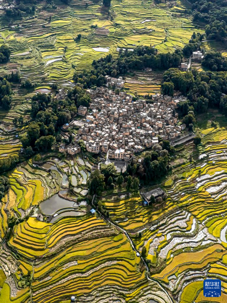 这是云南省红河哈尼族彝族自治州元阳县新街镇土锅寨村箐口村(无人机照片,2025年9月6日摄)。