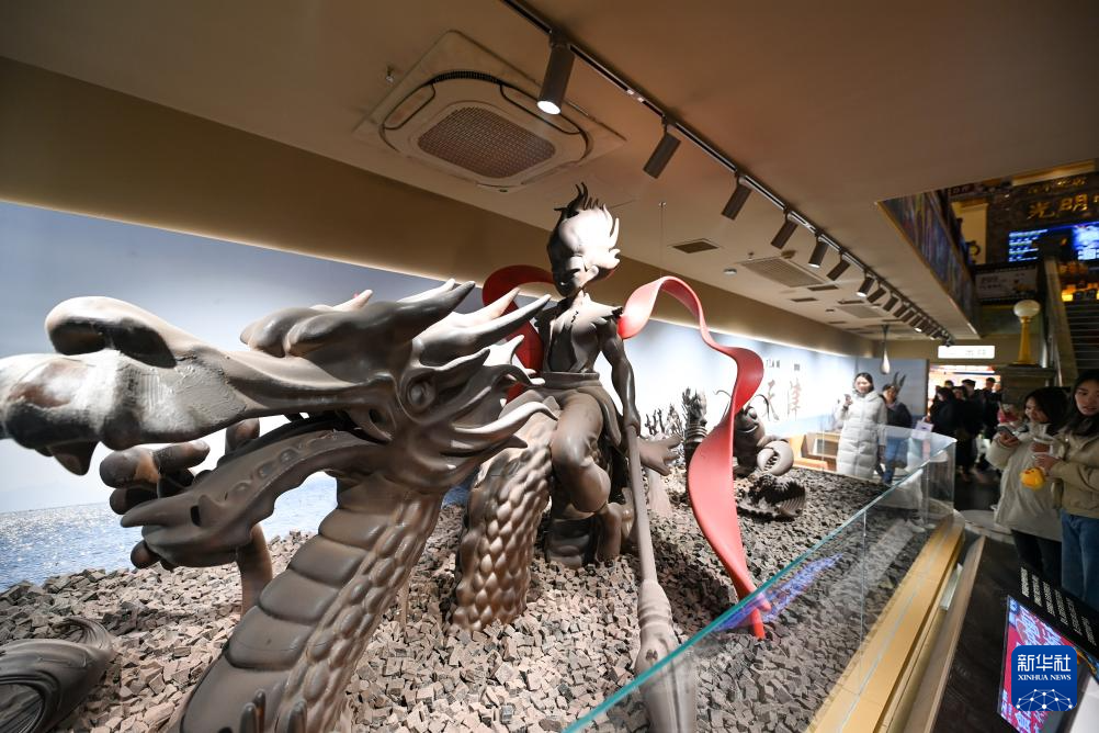 近日,位于天津市和平区金街步行街的天津巧克力博物馆正式开放。馆内陈列20余件巧克力雕塑作品,使用巧克力总量达10吨,由雕塑师纯手工打造。巧克力雕塑作品中既有“天津之眼”摩天轮、天津站等城市地标,又有哪吒闹海等故事场景,吸引众多游客参观打卡。