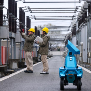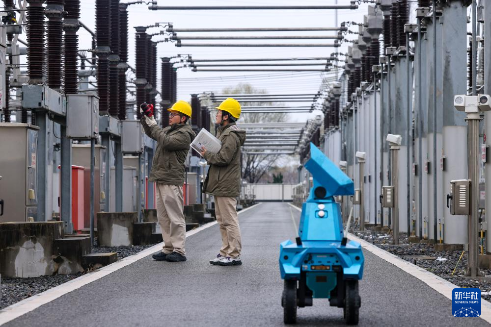 2026年1月1日,国网泰州供电公司运维人员在220千伏寺巷变电站运用机器人等设备进行雪后巡视。