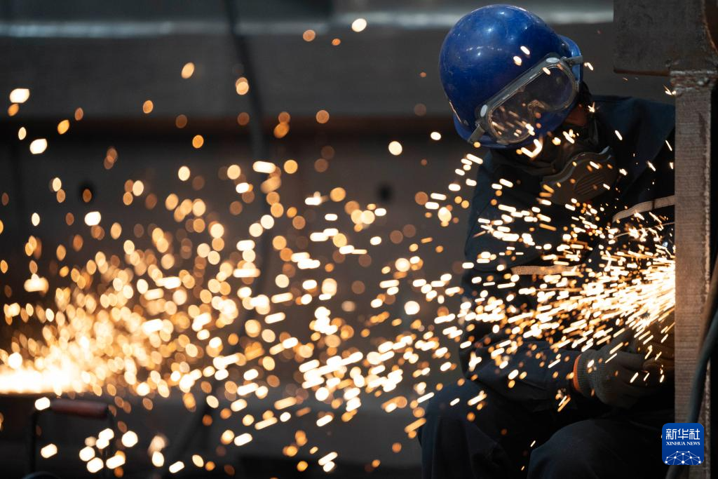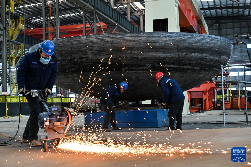 2026年1月1日,在位于河南省虞城县的河南九天封头制造有限公司生产车间,工人进行打磨作业。