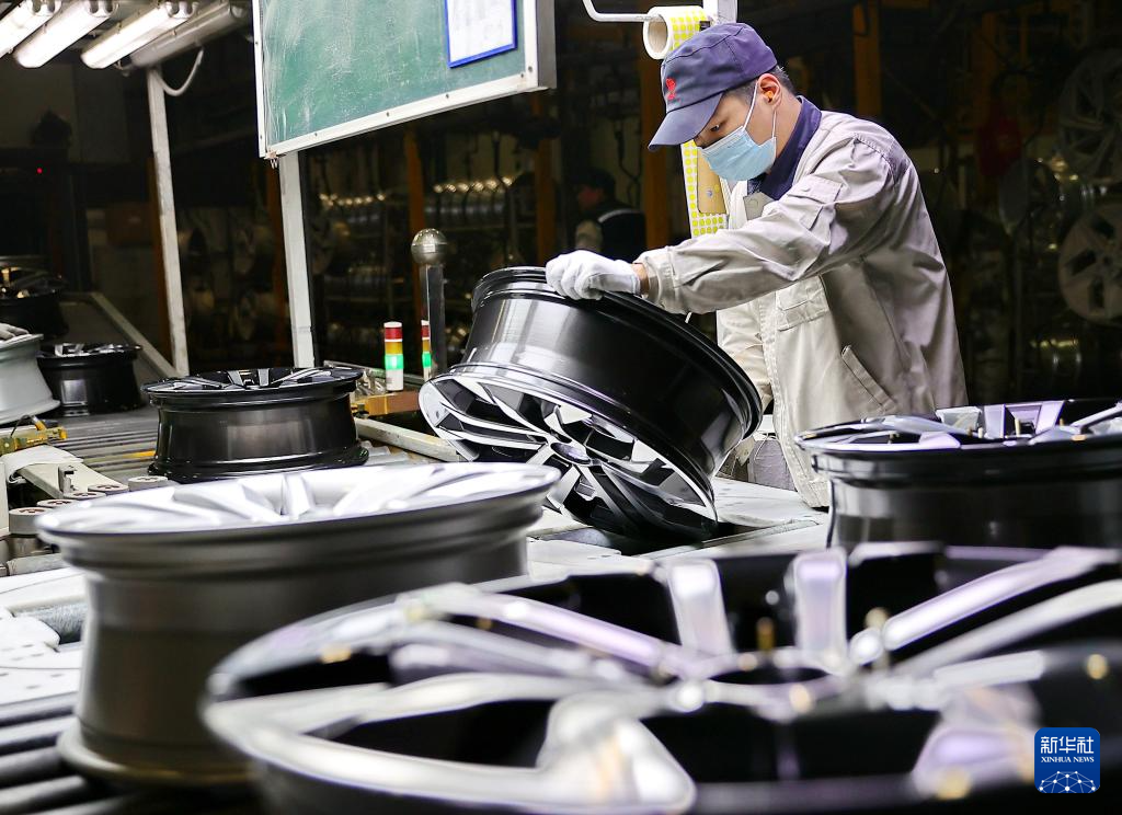 2026年1月1日,在位于河北省秦皇岛市的中信渤海铝业控股有限公司,工人在车轮生产线上工作。