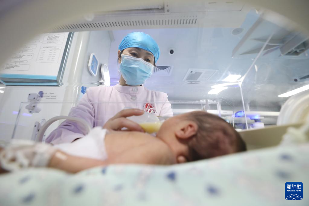 2026年1月1日,在河南省焦作市温县妇幼保健院新生儿科,护士为新生儿喂奶。