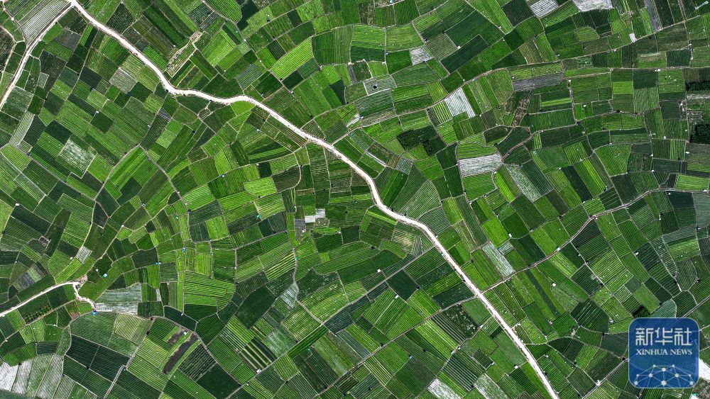 ↑2025年6月4日,江苏省兴化市施耐庵小学学生在“美丽中国我先行”环保主题活动中绘画(无人机照片)。新华社发(周社根 摄)