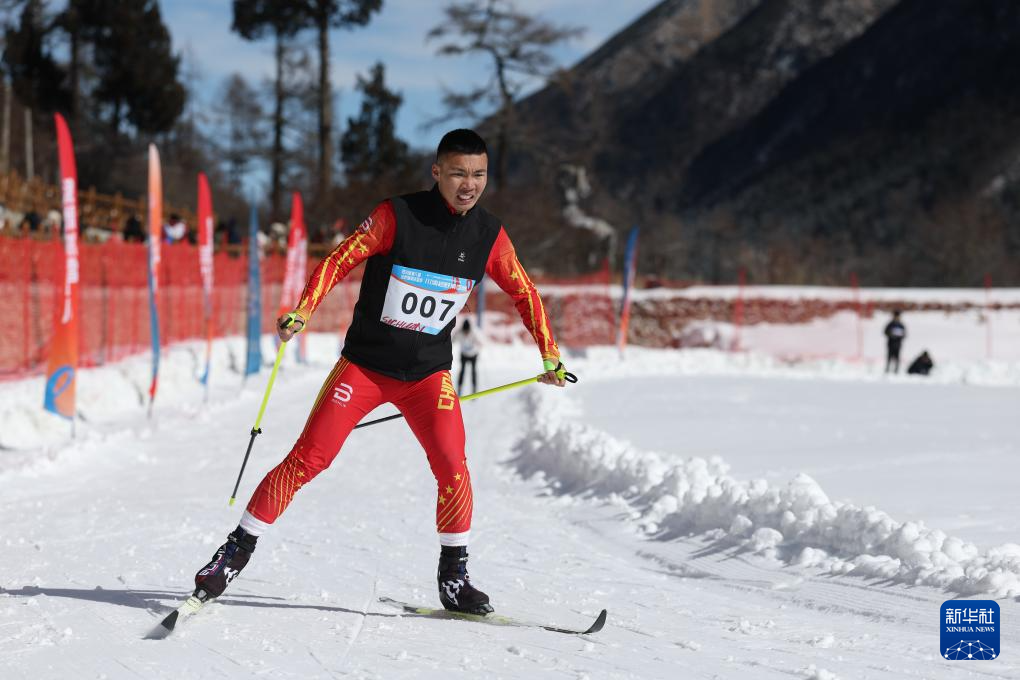 1月5日,在理县毕棚沟滑雪场,选手参加川渝越野滑雪赛。