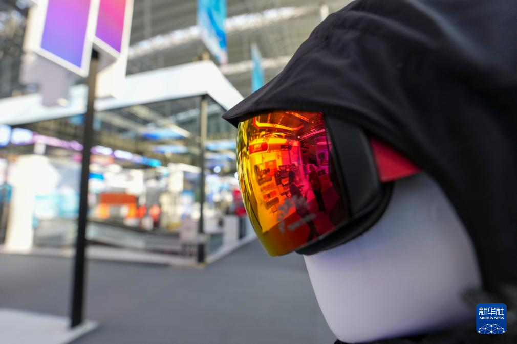 这是1月6日在2026哈尔滨国际冰雪经济博览会展会拍摄的雪镜展品。