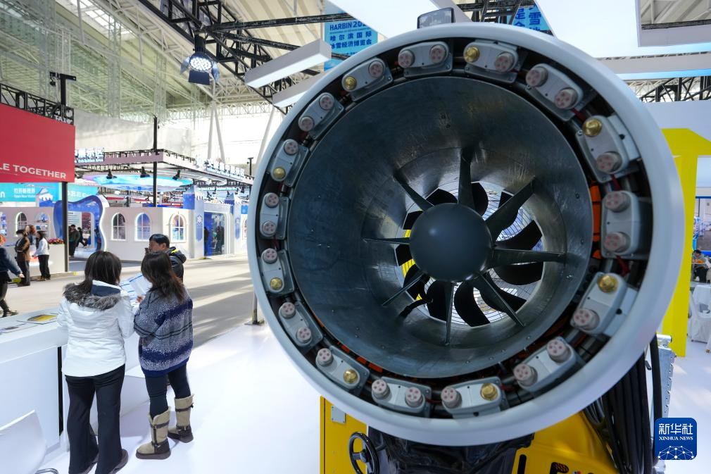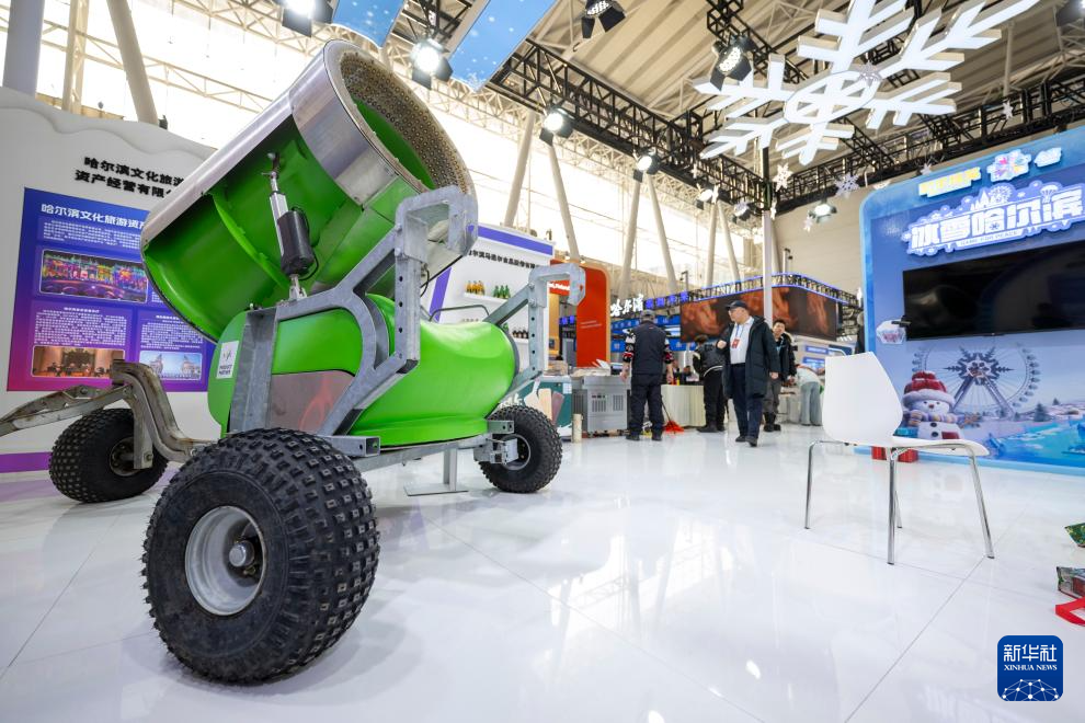 这是1月6日在2026哈尔滨国际冰雪经济博览会展会拍摄的造雪设备展品。
