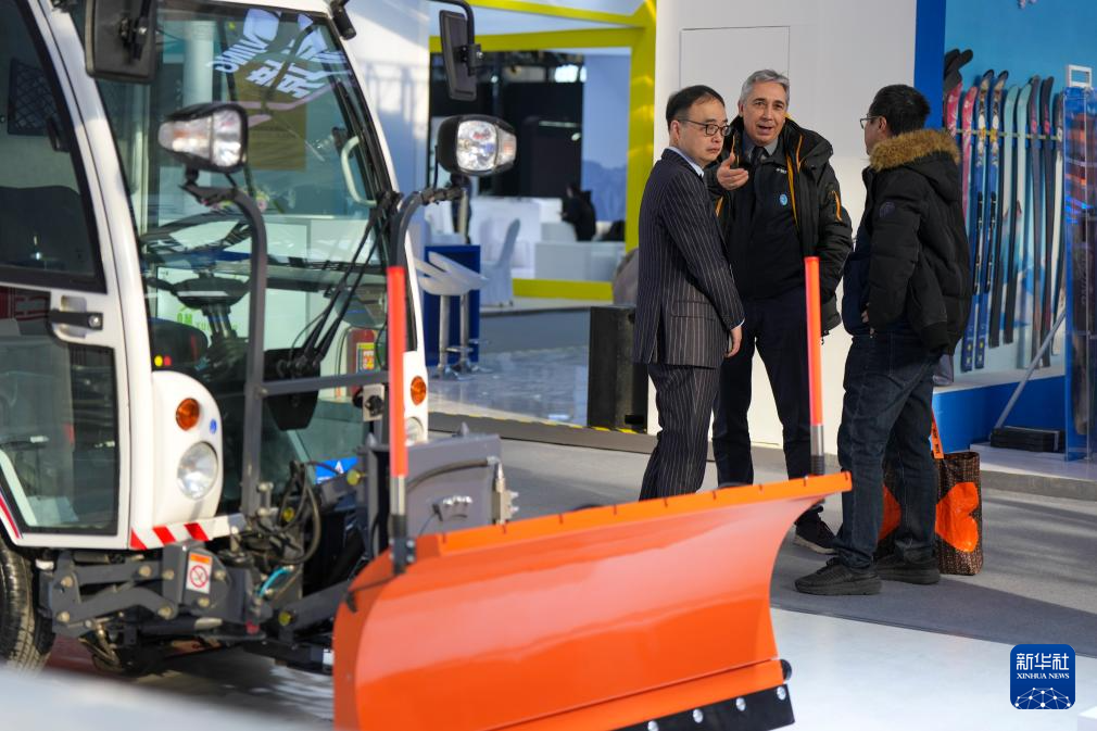 1月6日,参观者在2026哈尔滨国际冰雪经济博览会现场洽谈。