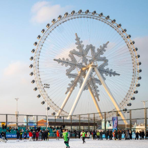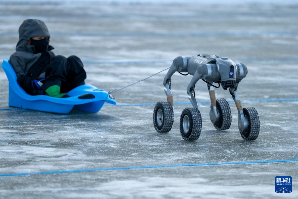 2025年12月30日,游人在哈尔滨松花江冰雪嘉年华园区体验冰雪娱乐项目(无人机照片)。