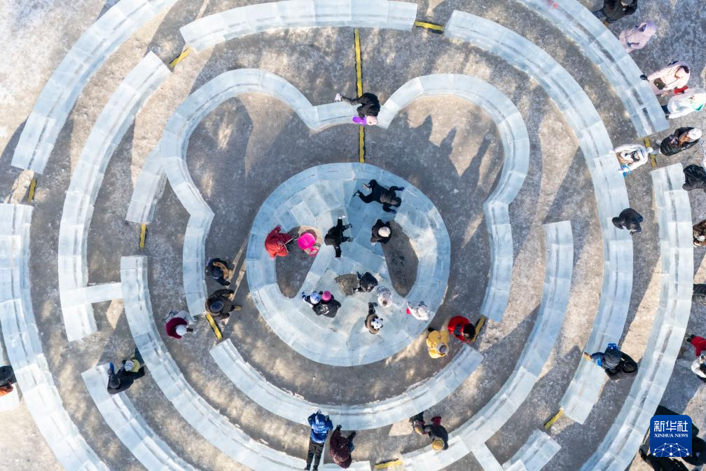 2025年12月31日,游人在哈尔滨冰雪大世界园区参与互动(无人机照片)。