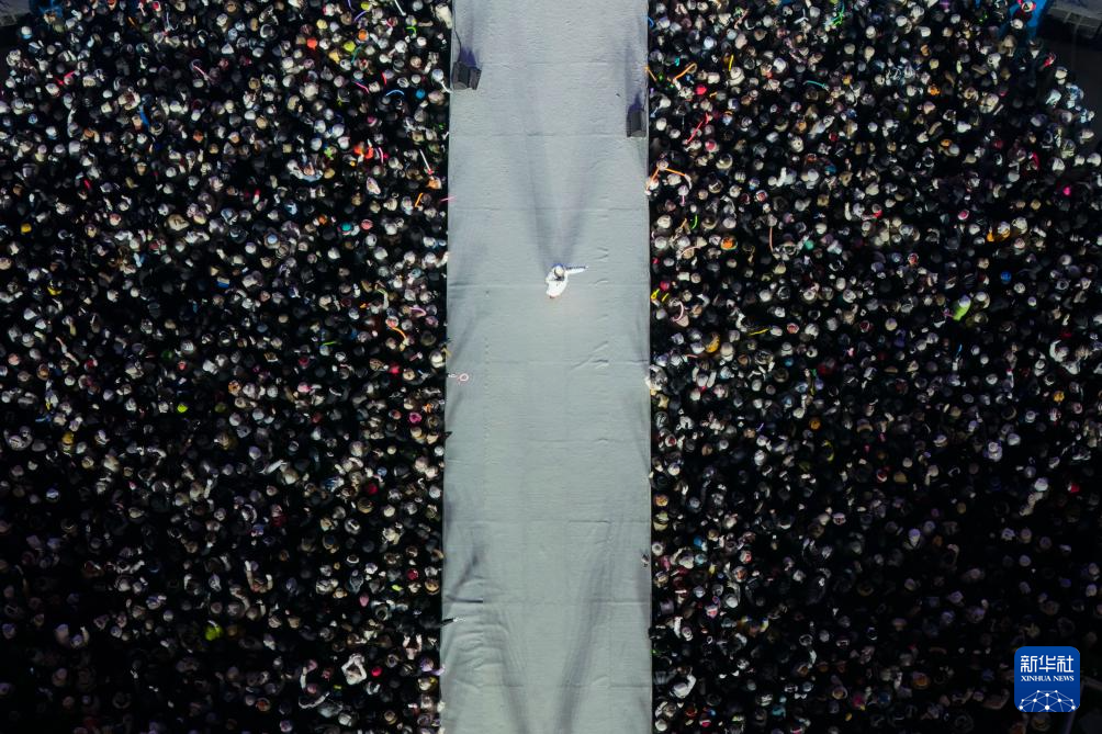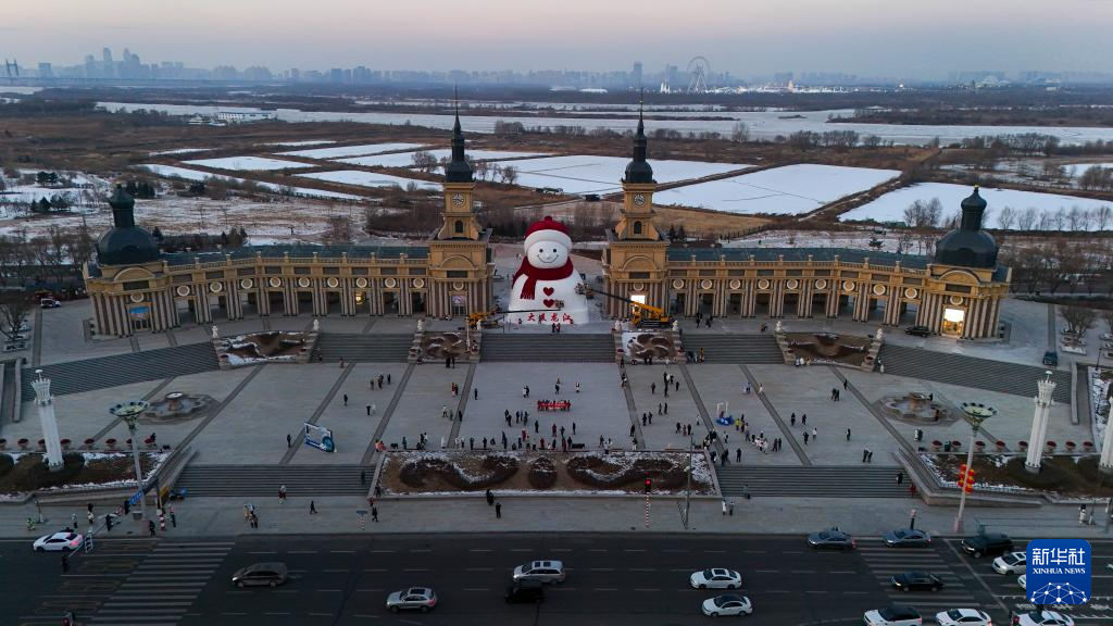 这是2025年12月15日在哈尔滨市群力音乐公园拍摄的大雪人(无人机照片)。