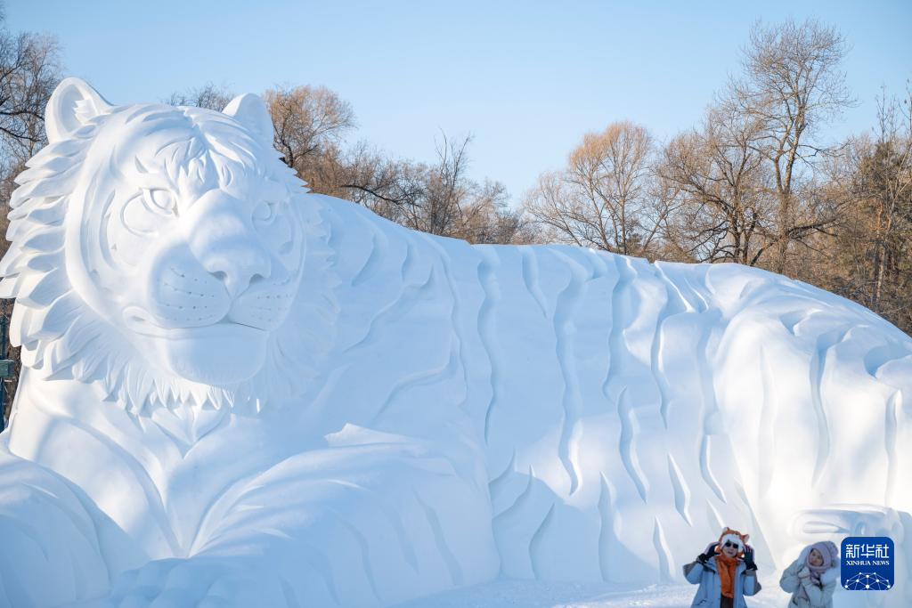 2026年1月5日,游人在第八届哈尔滨松花江冰雪嘉年华园拍照。