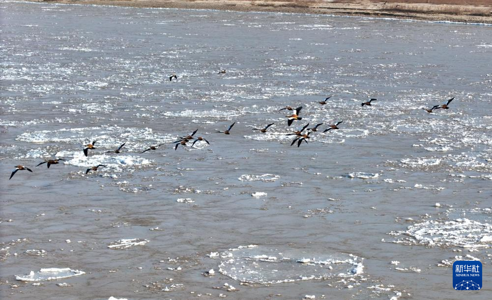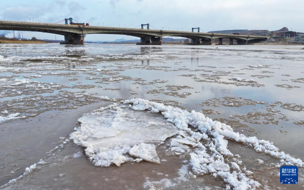 近日,受寒潮天气影响,黄河宁夏石嘴山段出现流凌景观,大面积的冰凌随着水流相互碰撞,构成一幅美丽的冬日画卷。