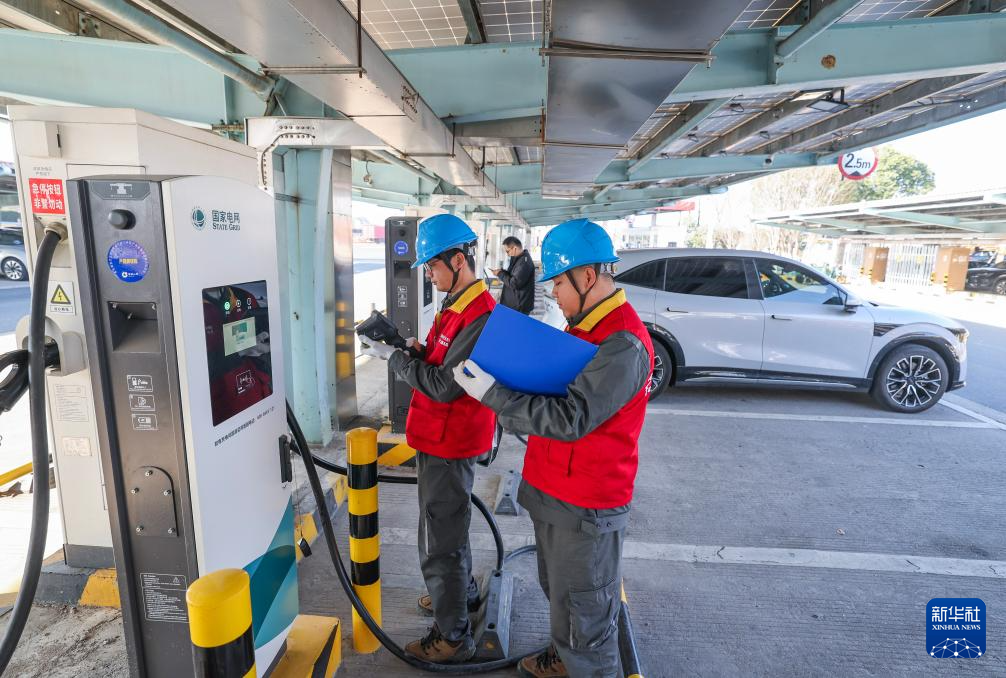 1月7日,国网湖州供电公司工作人员在G50沪渝高速长兴服务区对新安装的大功率充电桩开展巡检。