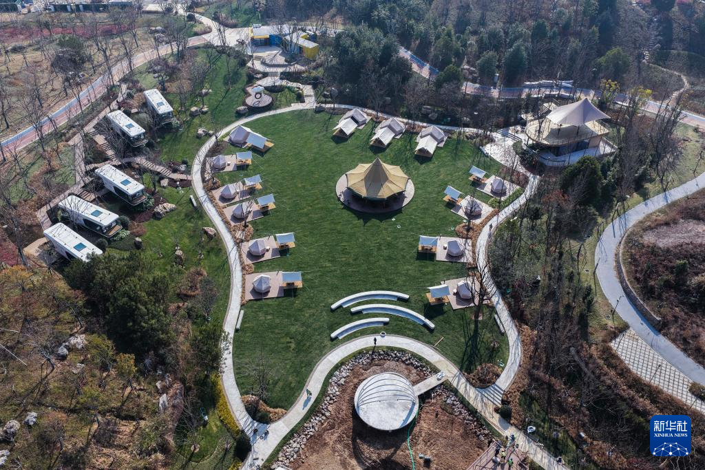 空中俯瞰金华市金东区金漪湖云蝶中心的露营基地(1月8日摄,无人机照片)。