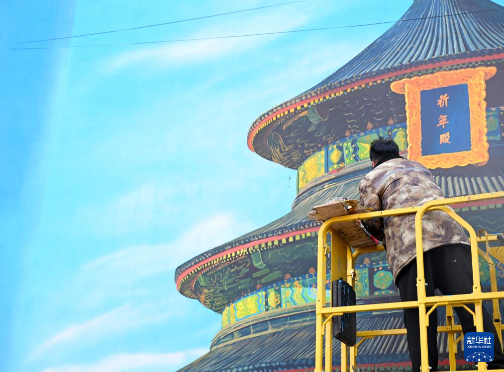 1月6日,在河南商丘睢阳区吴营村,吴承言在墙上绘画。
