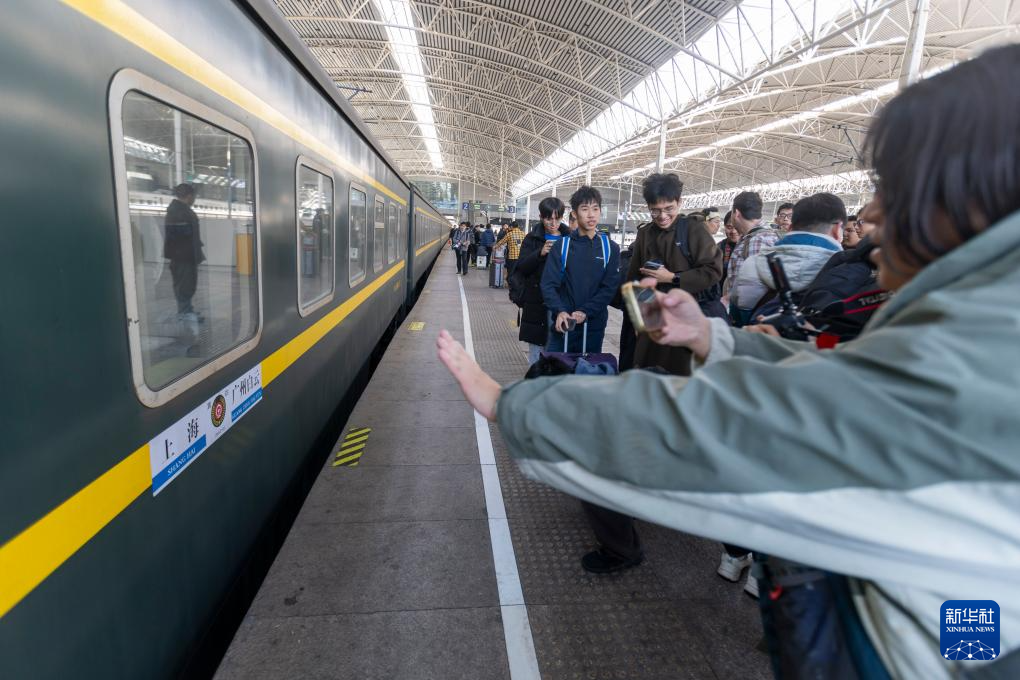 1月14日,火车迷在上海火车站送别Z100次列车。