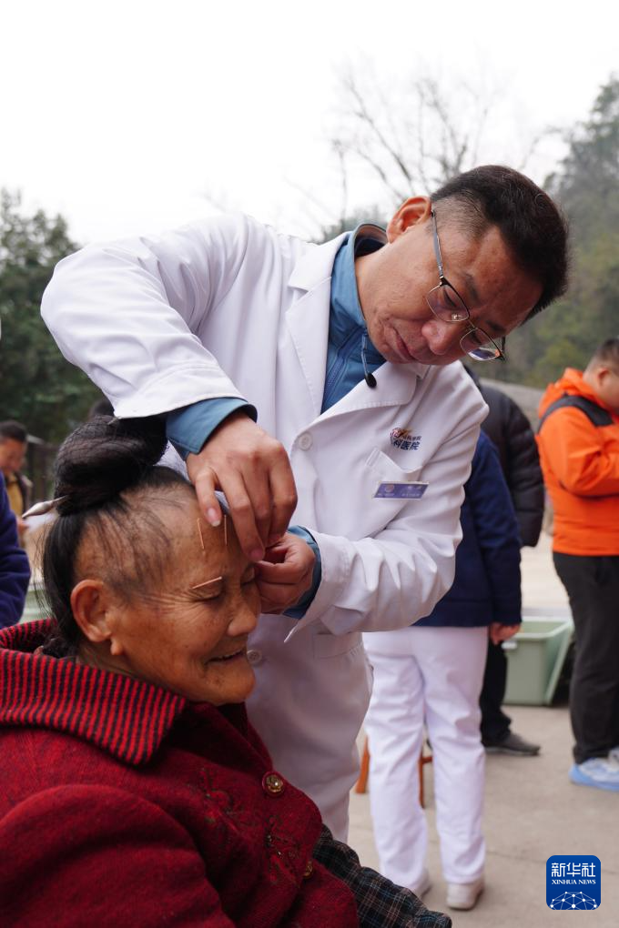 1月14日,来自中国中医科学院眼科医院的刘健医生(右)为村民进行诊疗。