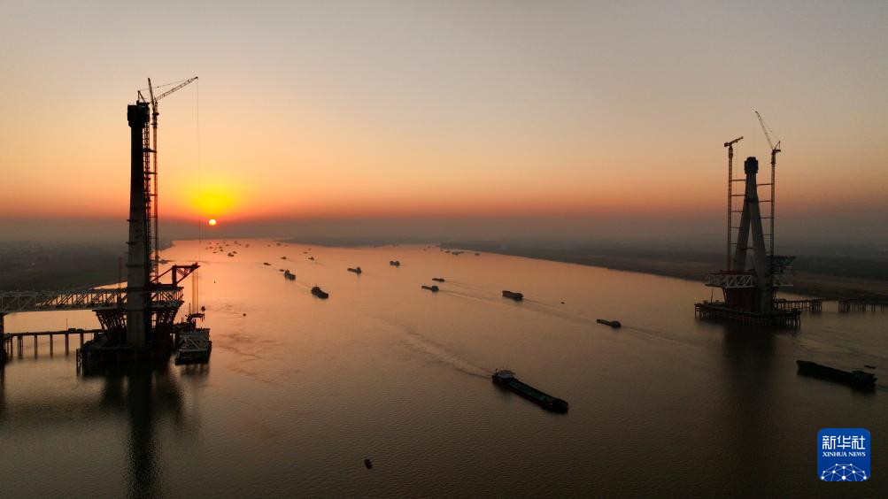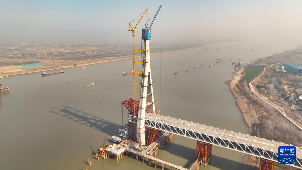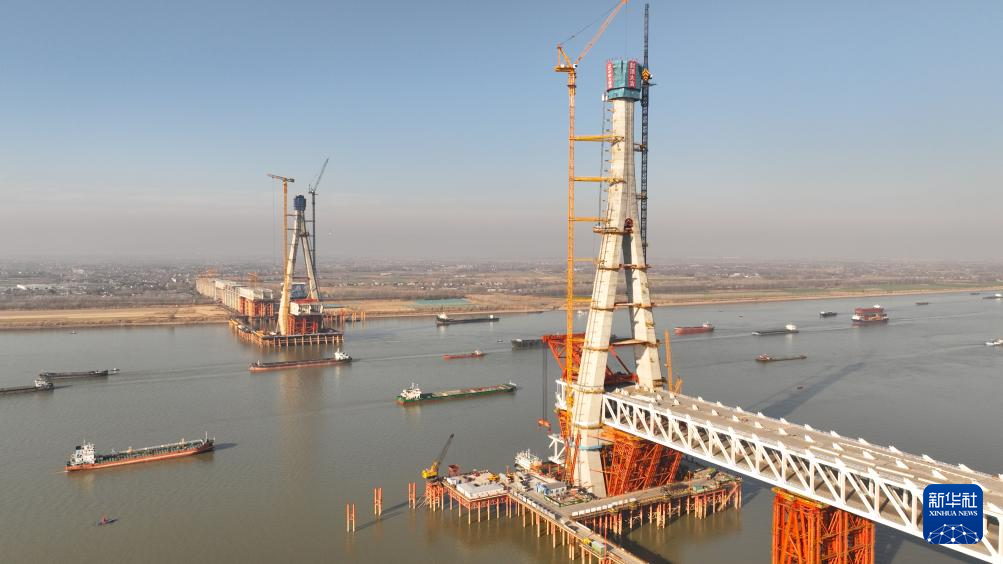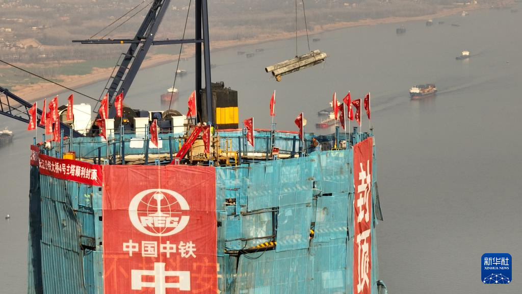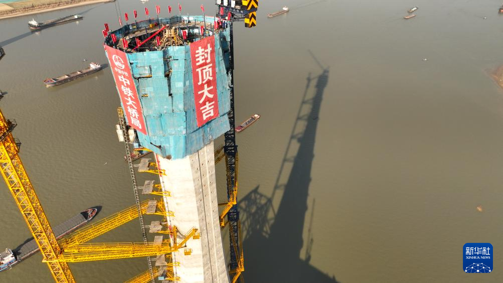 安徽池州长江公铁大桥首个主塔成功封顶-新华网