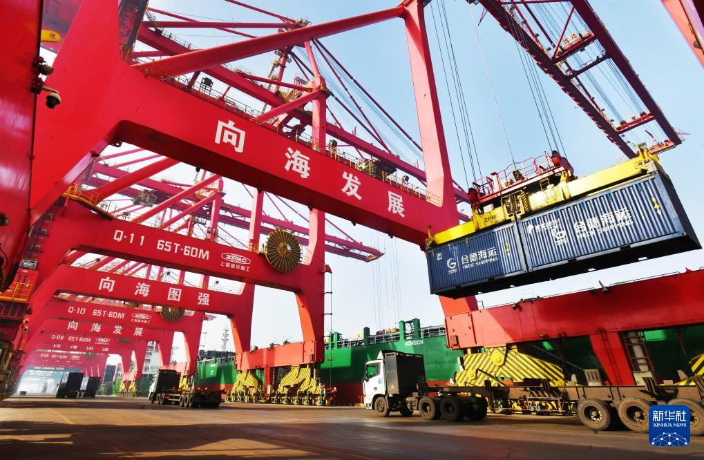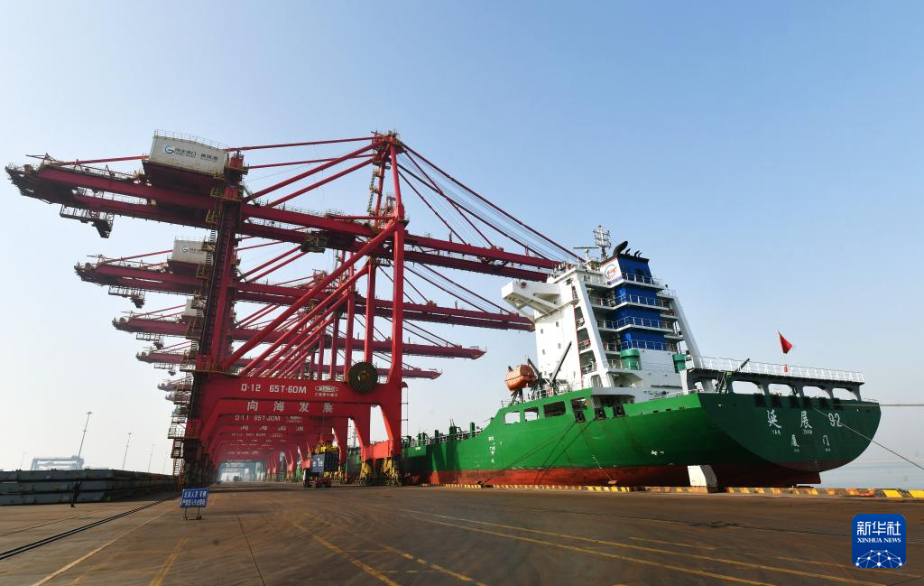 1月15日,一艘货轮靠泊在黄骅港综合港区集装箱码头。