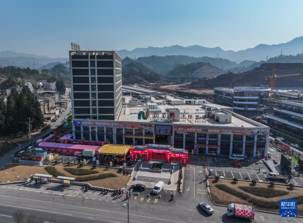 1月15日拍摄的建德新农都农产品批发市场的年货节现场(无人机照片)。